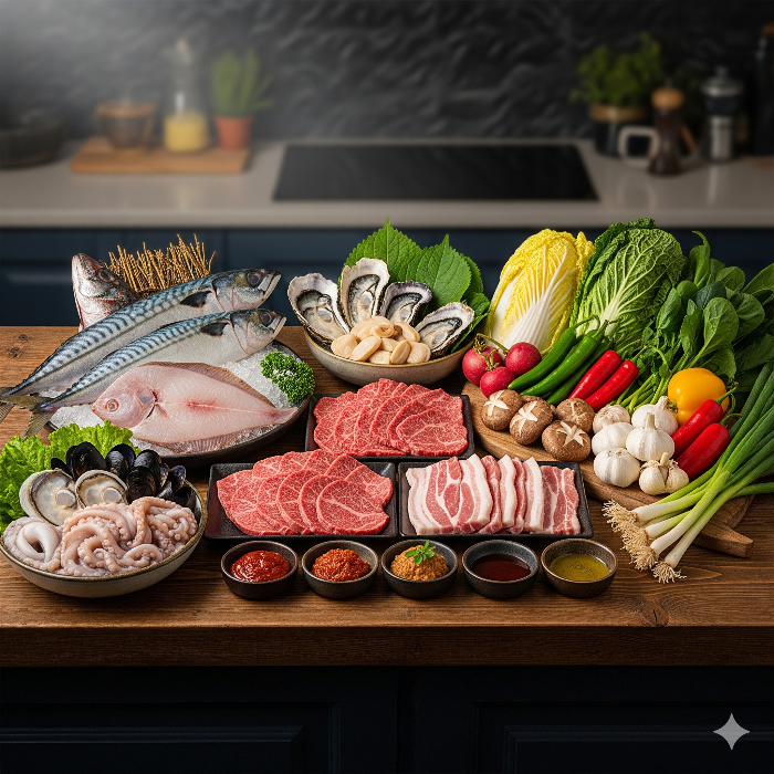 요리의 메인이 되는 고기 같은 재료들은 구워 먹는 삽겹살은 300g, 양념해서 두고 먹을 수 있는 불고기는 1kg 정도가 최대이고 나머지 첨가 야채들은 무조건 최소량으로 구매한다.