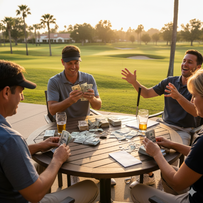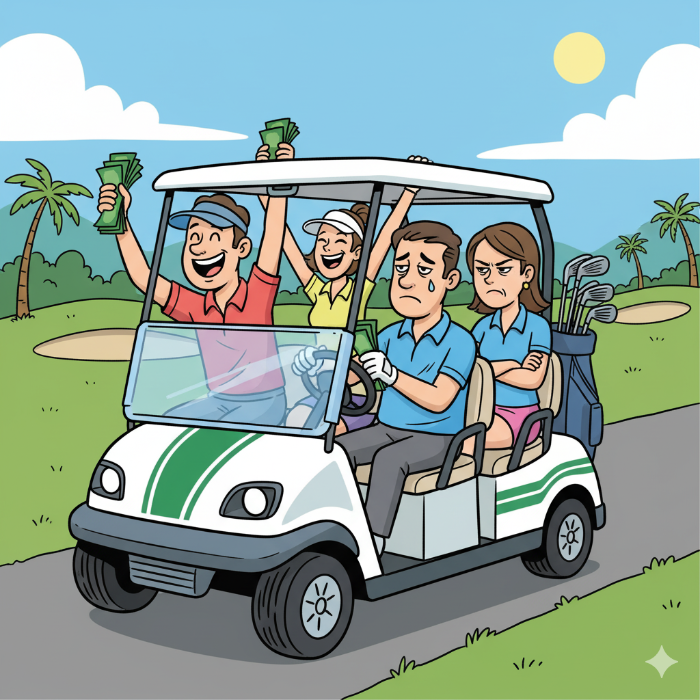 - 모든 동반자가 동일한 금액을 내고 샷을 날린 후 둘 씩 편을 먹고 타수를 합산해서 잘 나온 편이 상금을 받는다.