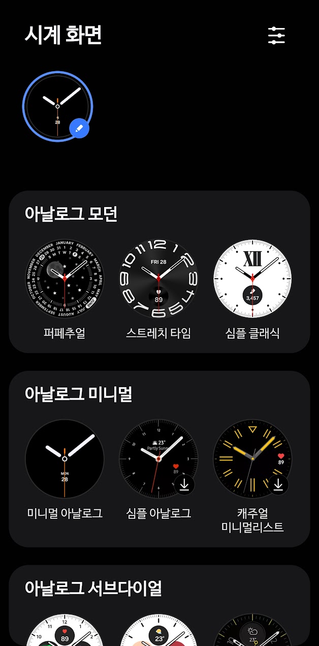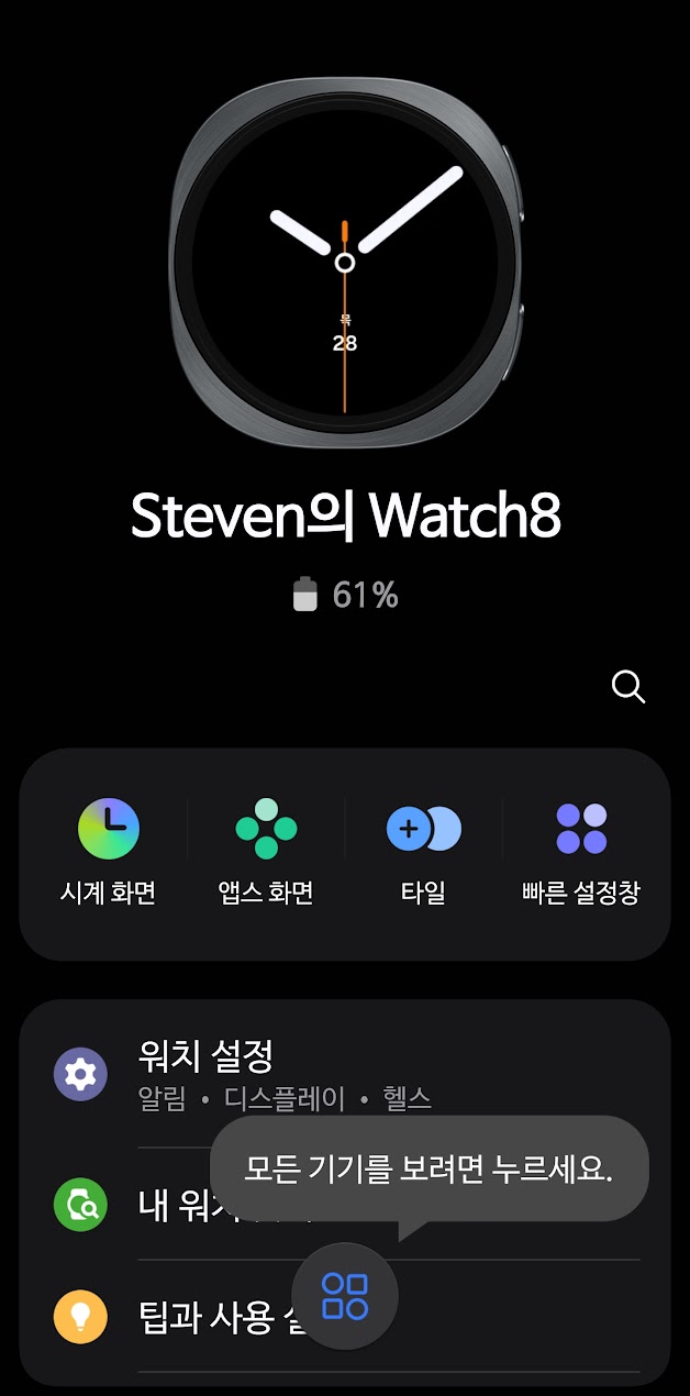 배경 화면 설정하는 방법이나 디자인들도 비슷하고 워치8의 특징을 보여 주는 디자인은 없는 듯 하다.